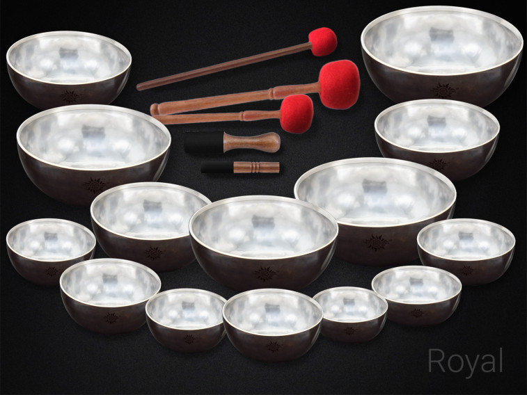 Royal версия. Закажите, если вам нужен набор, каждая чаша в котором будет особенной, уникальной по звуку, именно в этом дизайне. Обязательно подберите низкочастотную пятнадцатую (объединяющую) чашу из линеек Healingbowl® - Old Tibet®, Himalayan Pearl®, Silver Pearl®, Surya Pearl®.