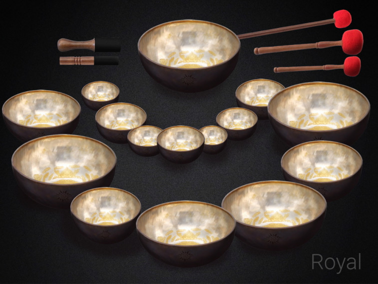 Королевский версия. Закажите, если вам нужен набор, каждая чаша в котором будет особенной, уникальной по звуку, именно в этом дизайне. Обязательно подберите низкочастотную пятнадцатую (объединяющую) чашу из линеек Healingbowl® - Old Tibet®, Himalayan Pearl®, Silver Pearl®, Surya Pearl®.