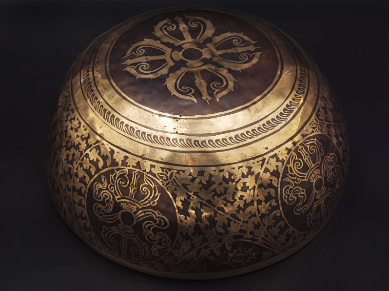 Матовое темное покрытие, тонкая художественная «золотая» чеканка транслируют энергию богатства и роскоши. Древние сакральные символы помогают сформировать в пространстве атмосферу старого Тибета.