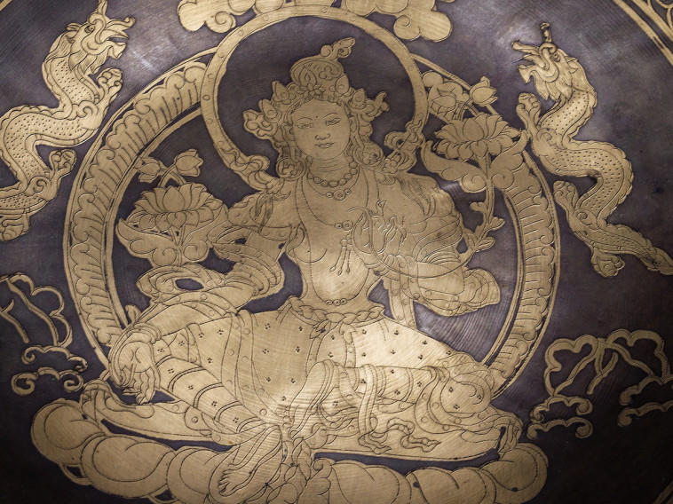 Матовое темное покрытие, тонкая художественная «золотая» чеканка транслируют энергию богатства и роскоши. Древние сакральные символы помогают сформировать в пространстве атмосферу старого Тибета.